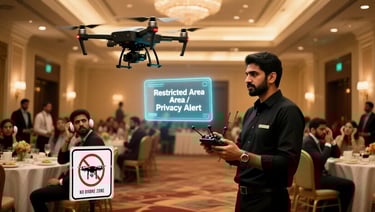 Many venues (like hotels, banquet halls) do not permit drone flying or require special permits. You'll need to check with your venue beforehand.